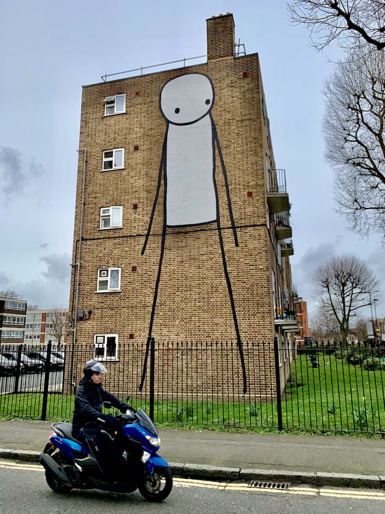 Art and the built environment. A striking work in Hackney by Stik. Photo Credit: © Antony Robbins.