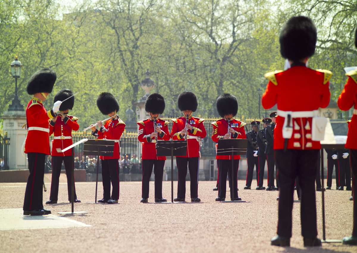 Band performing during The Changing of the Guard ceremony taking place in the courtyard of Buckingham Palace. Photo: ©London On View/Pawel Libera.